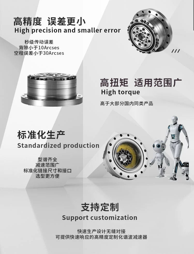 CS tooth profile design, self-developed CMP heat treatment process, 1um track precision grinding, providing higher rigidity, precision, and torque.